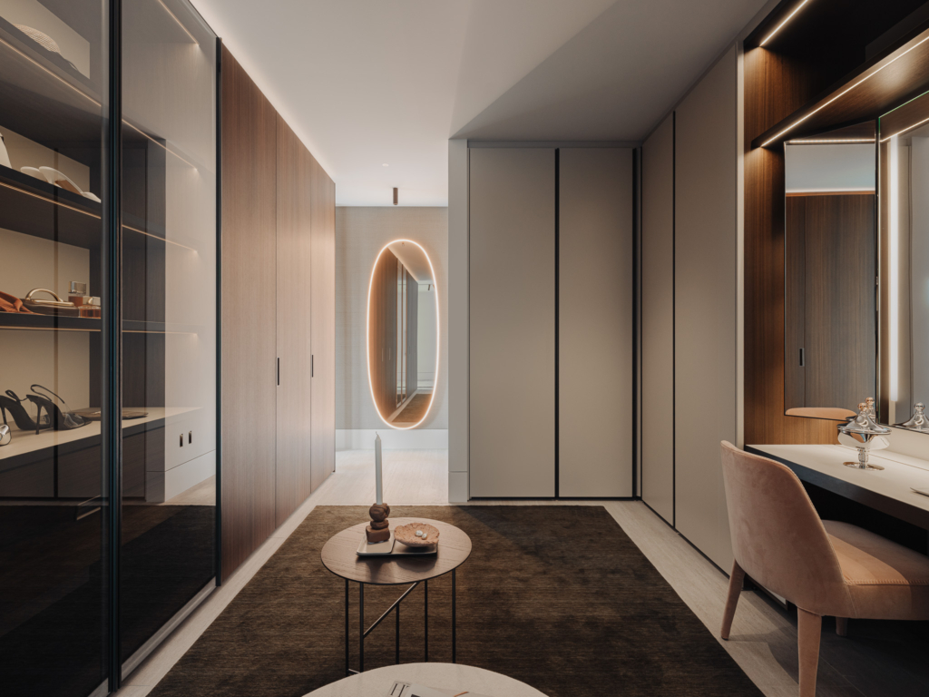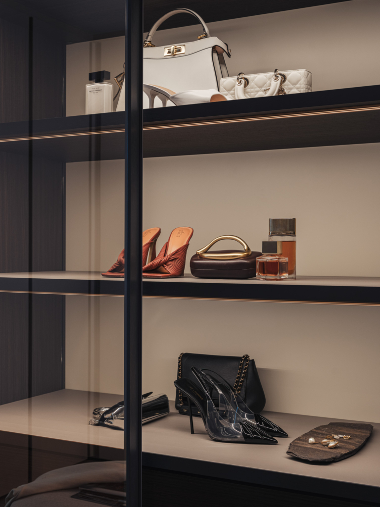 In the master bedroom, a system of sliding panels allows you to effortlessly switch between openness and privacy; the space transforms elegantly with a single movement.